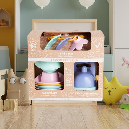 Coffret d’Éveil 100% Recyclé – Le Rêveur, L’Acrobate et L’Explorateur – Le Jouet Simple