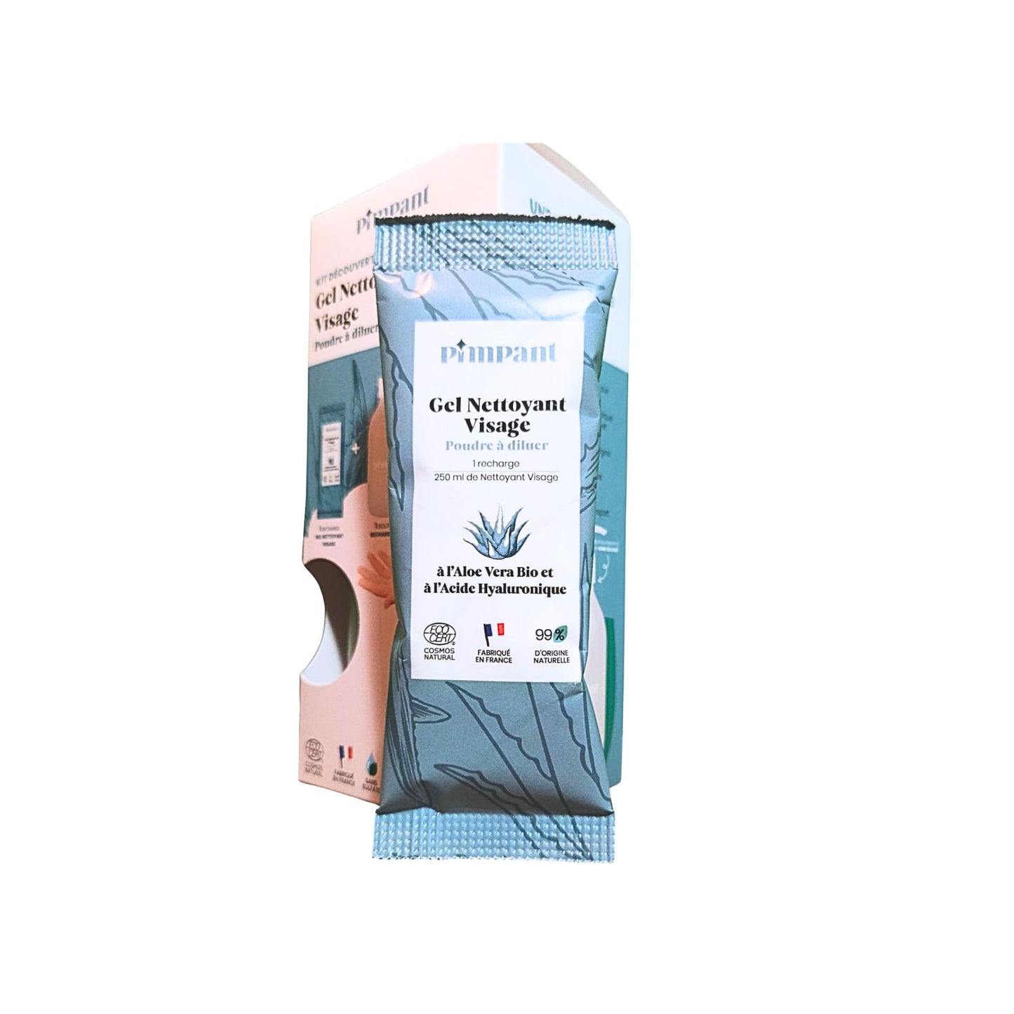 PIMPANT Aloe Vera Gesichtsreiniger-Entdeckungsset : Verwandeln Sie Ihre Schönheitsroutine mit diesem innovativen Set in eine umweltbewusste Geste. Bestehend aus einer Pulvernachfüllung , die in Wasser verdünnt wird, um 250 ml Reinigungsgel herzustellen. 100 % natürlich, bietet es dank Bio-Aloe Vera und Hyaluronsäure eine sanfte und feuchtigkeitsspendende Pflege für Ihre Haut. Die Pumpflasche aus Glas ist wiederverwendbar und umweltfreundlich gestaltet und verfügt über einen 100 % natürlichen Duft aus Frankreich.