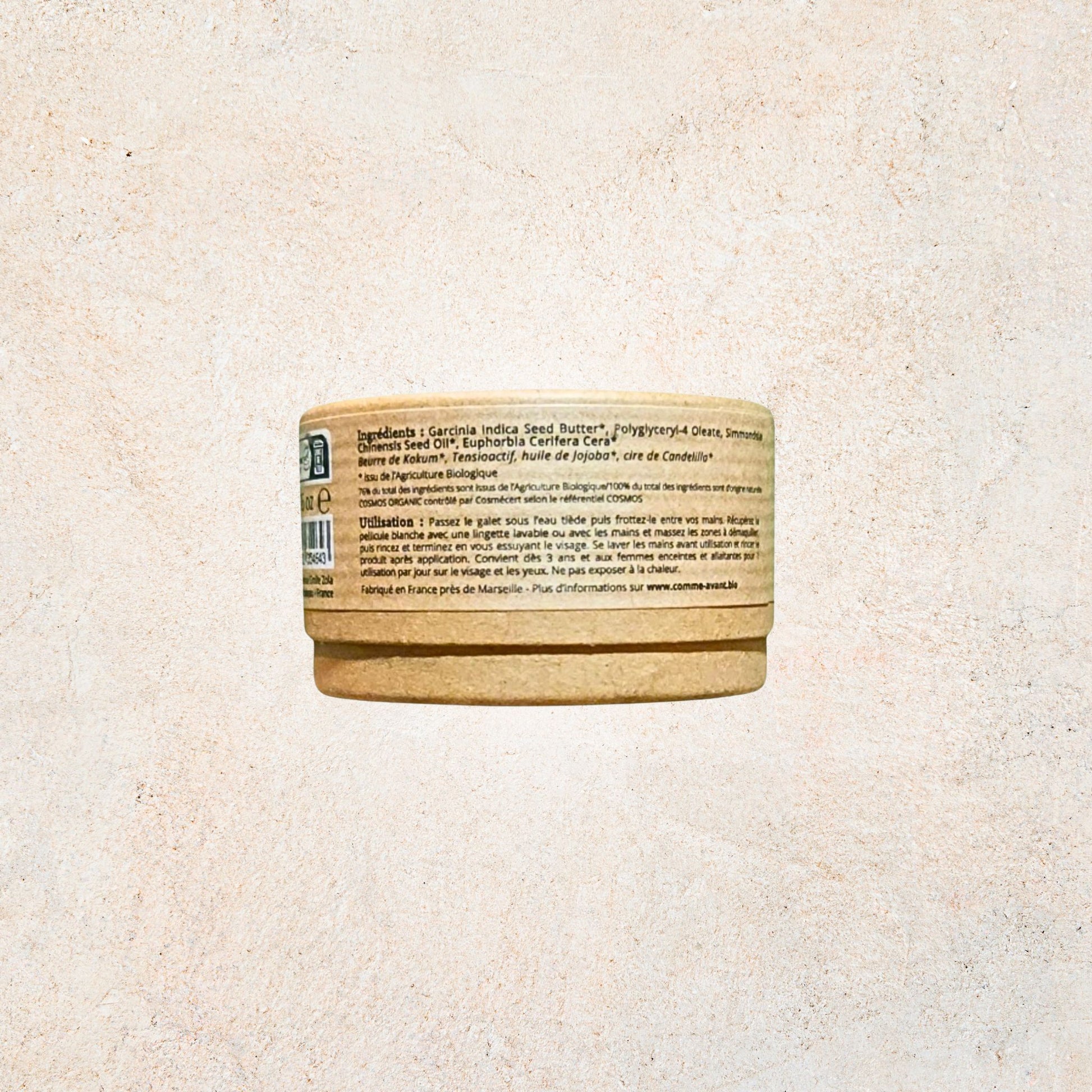 COMME AVANT solid makeup remover with jojoba oil : a 100% natural, effective, and zero-waste makeup remover. Formulated with only 4 clean ingredients, it gently removes makeup, even waterproof makeup, while nourishing the skin. Vegan, biodegradable, and made near Marseille , this solid makeup remover is the ideal solution for an eco-responsible beauty routine.