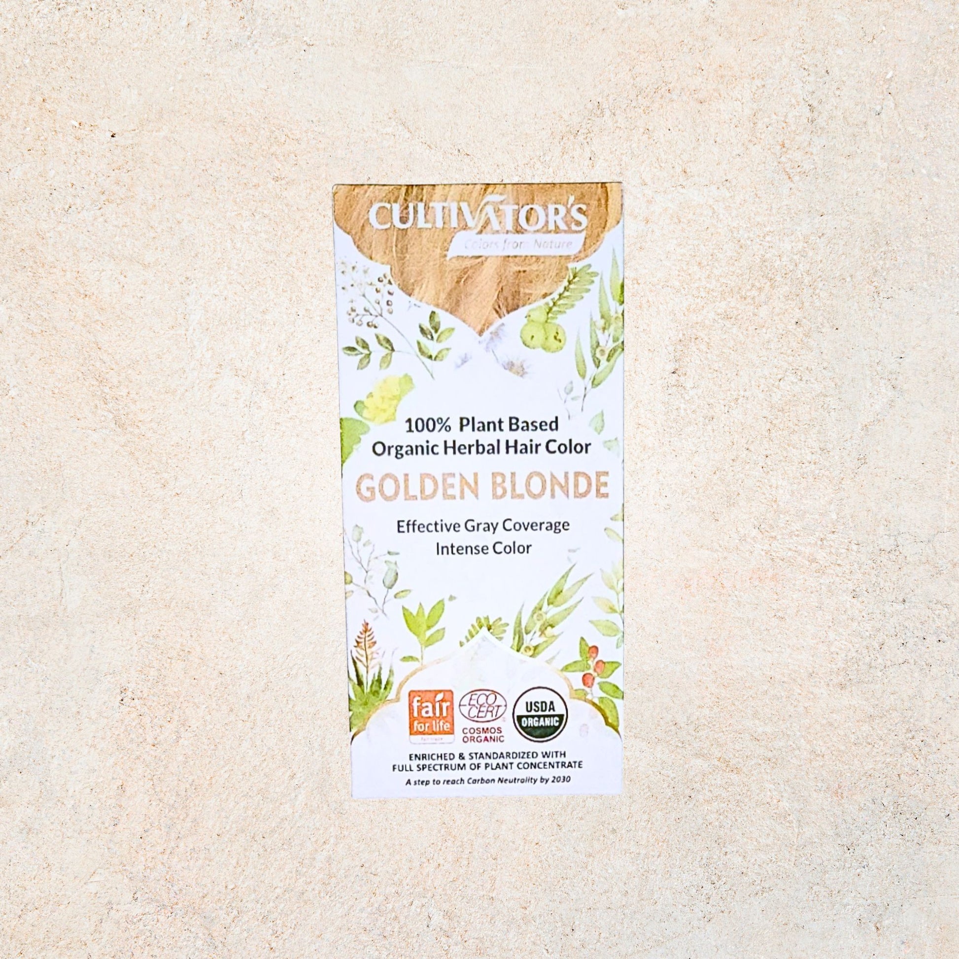 La Coloration Blond Doré 100% Naturelle de Cultivator’s est une teinture capillaire bio offrant une couverture parfaite des cheveux gris. Composée d'herbes biologiques aux pigments naturels, elle nourrit, revitalise et augmente la brillance des cheveux tout en respectant leur élasticité et douceur. Grâce à son processus d'oxydation naturelle, la teinture forme une couche saine de couleur qui pénètre la cuticule capillaire, sans laisser de résidus. La couleur s'estompe progressivement, pour un fini soyeux et naturel. Cette teinture végétale convient à tous, femmes et hommes, et préserve l'intégrité des cheveux.