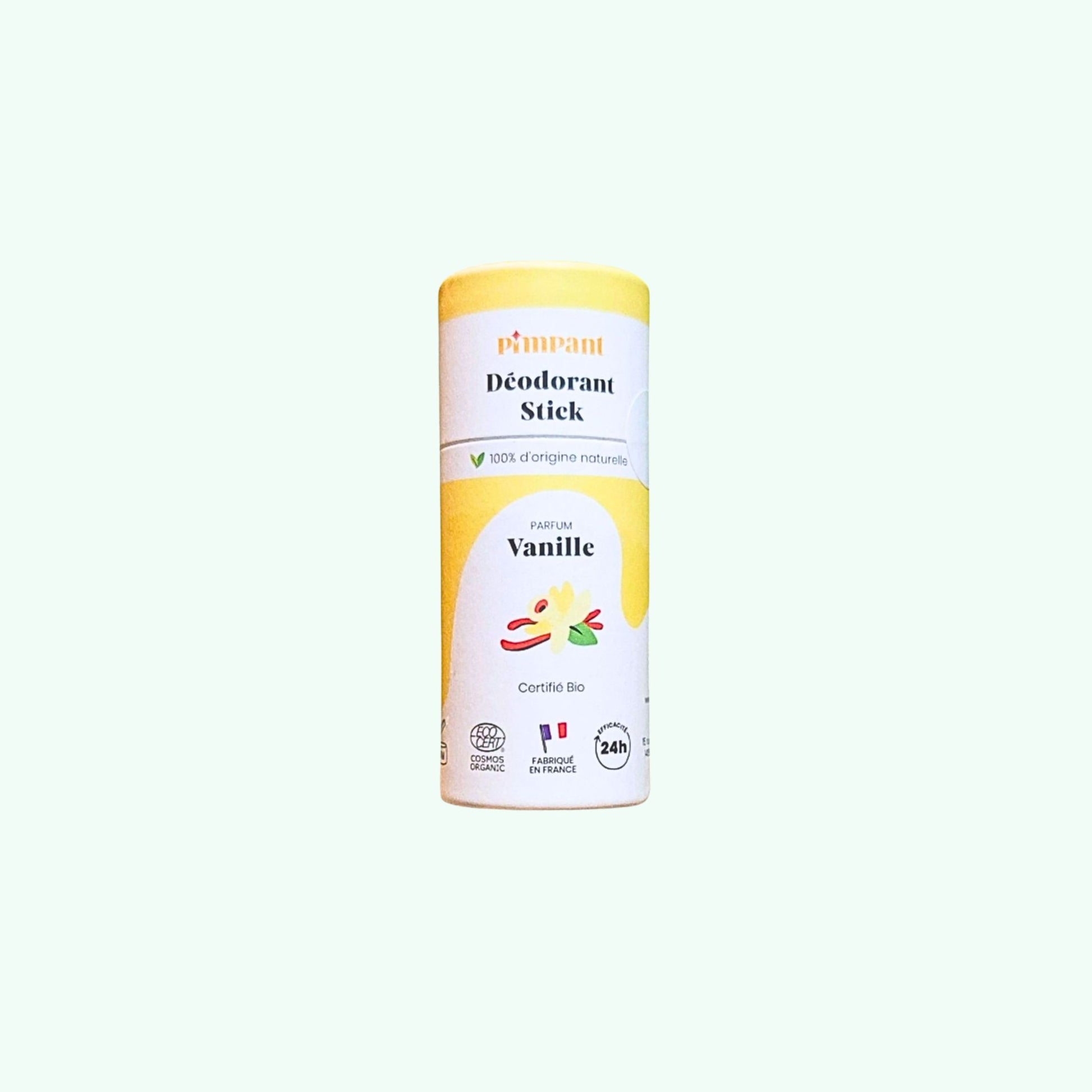 Le Déodorant Solide PIMPANT Vanille est votre nouveau secret pour rester frais et zen toute la journée. Ce déodorant bio, certifié COSMOS Organic, protège vos aisselles pendant 24 heures, sans sels d’aluminium ni produits chimiques. Sa texture douce et son parfum exotique 100% naturel de Vanille vous accompagneront dans toutes vos aventures, même après une journée bien remplie. Son format pratique et son emballage éco-responsable en font un allié incontournable pour vos déplacements.